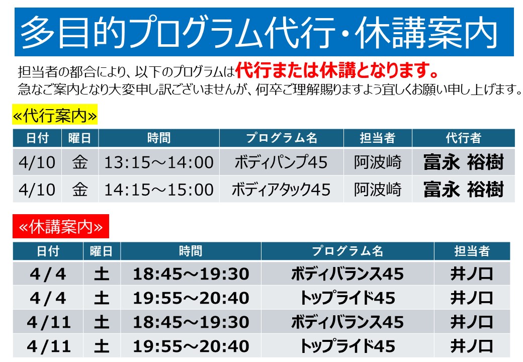 4月のみのスケジュールとなり、5月より再度、変更します。